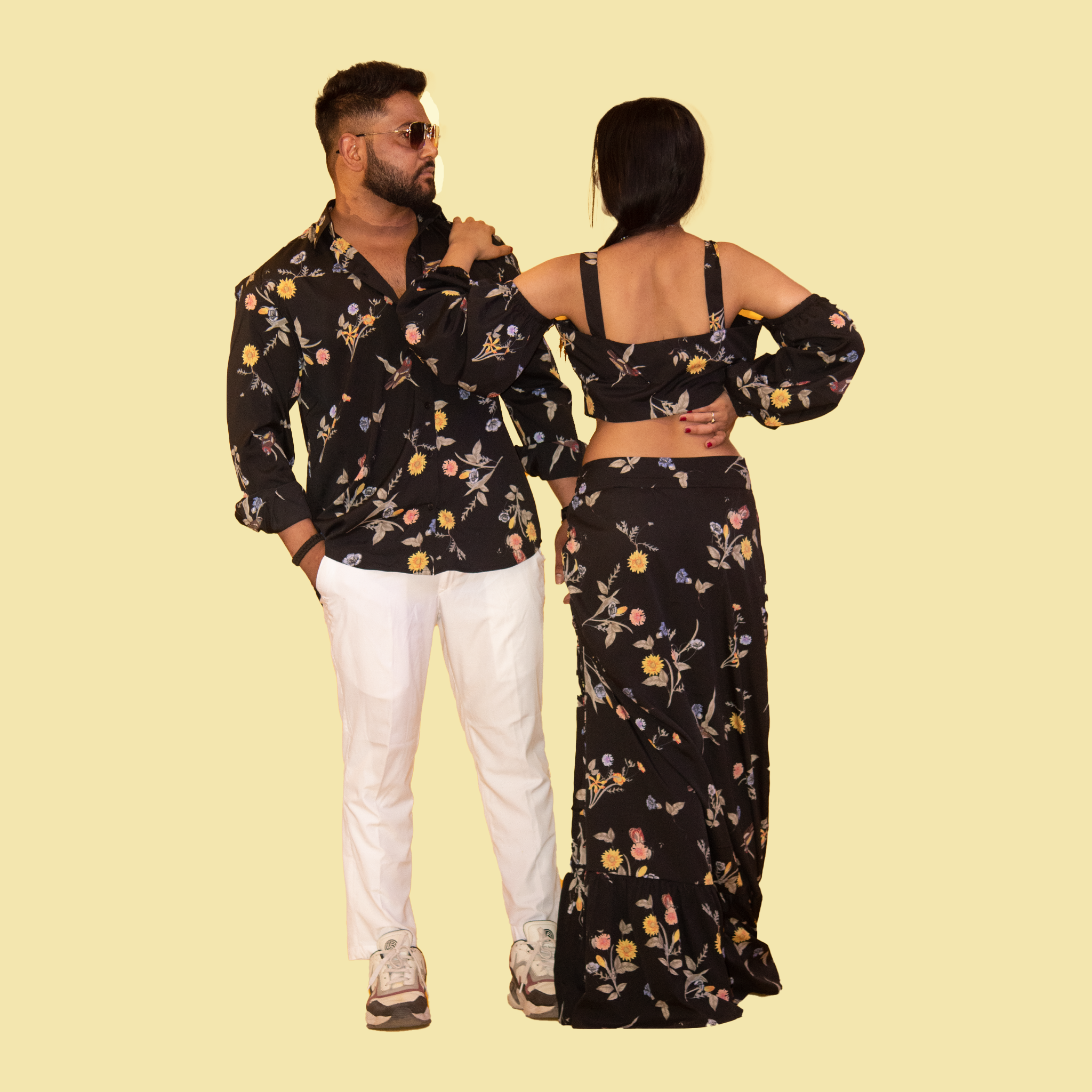 1. Floral Print Crepe Matching Outfit for CoupleFloral Print Crepe Matching Outfit for Couple