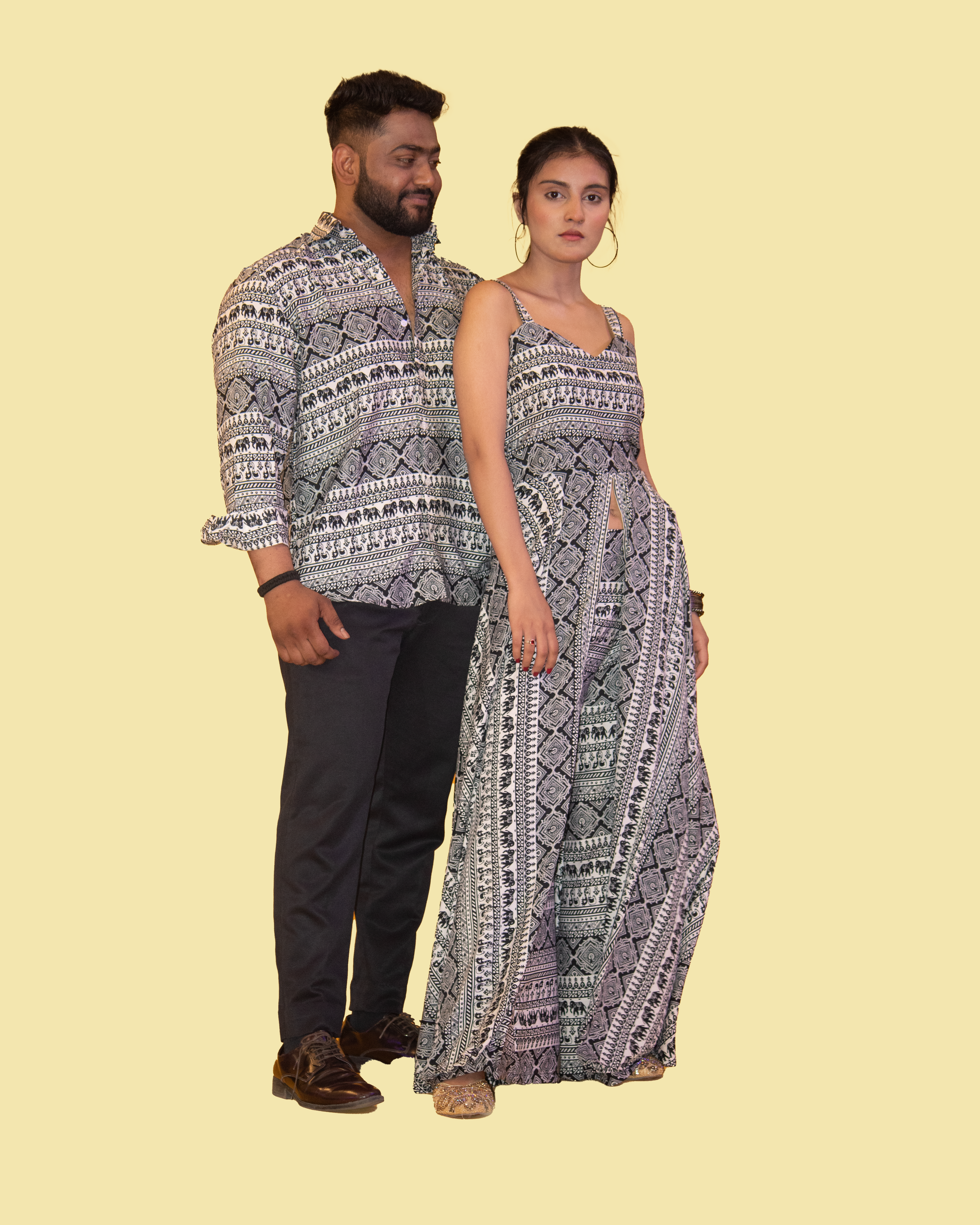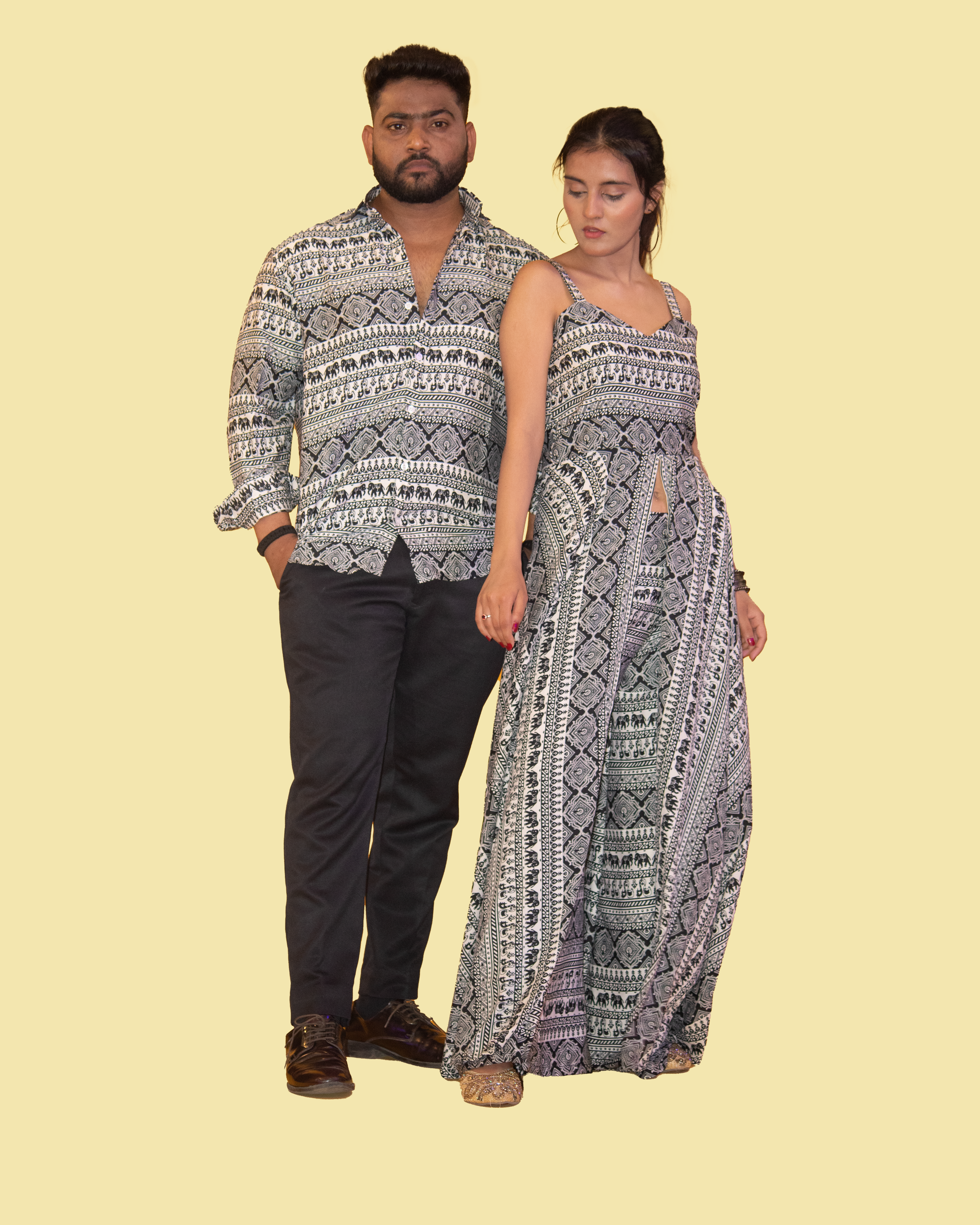 1. Floral Print Crepe Matching Outfit for CoupleFloral Print Crepe Matching Outfit for Couple