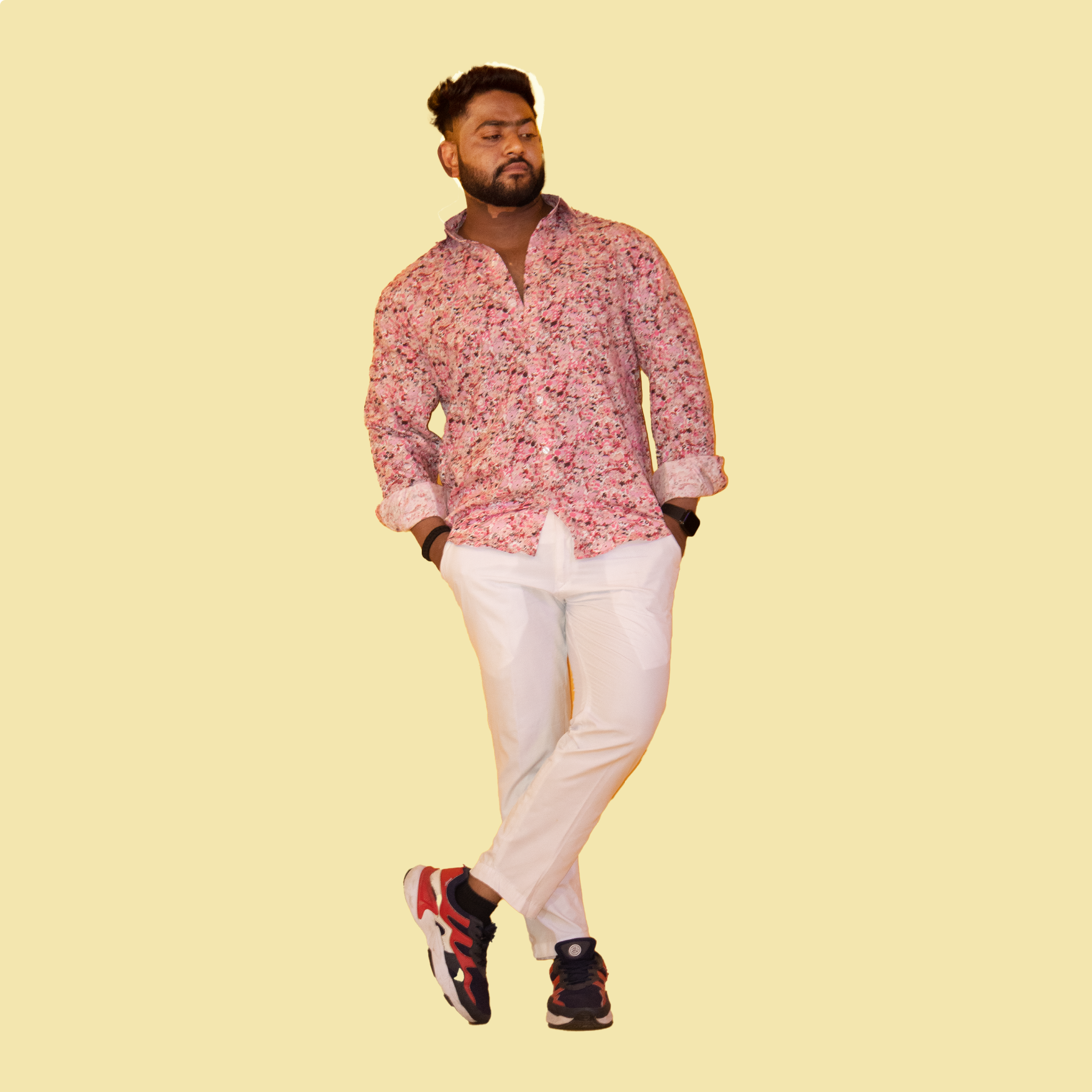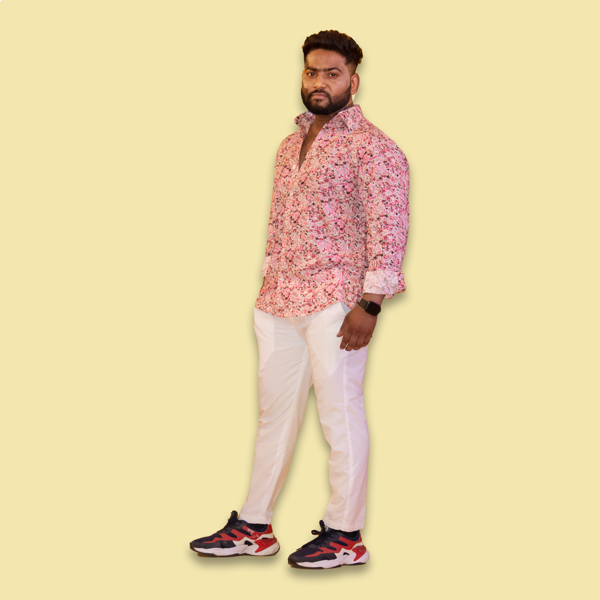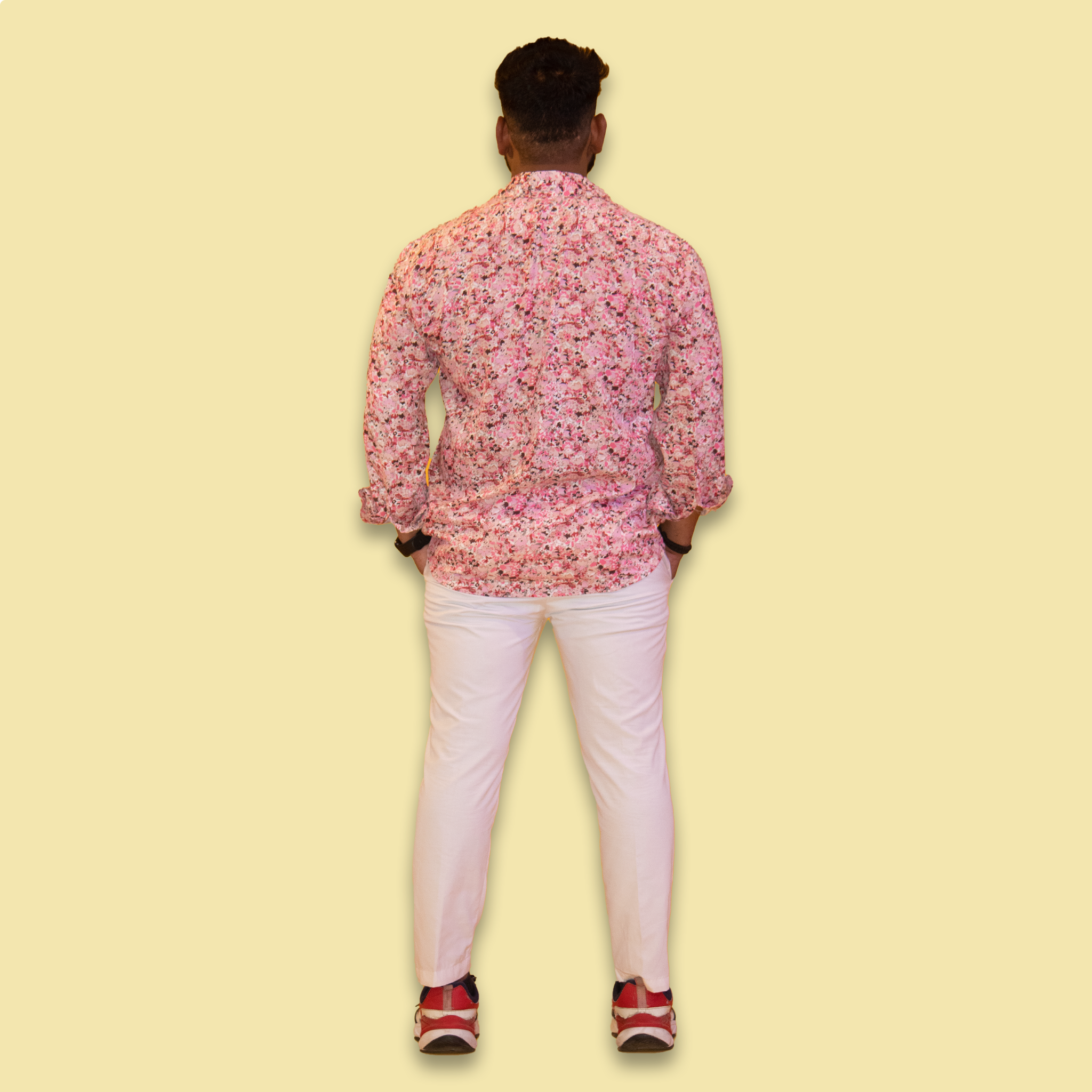Pink Floral Print Full Sleeves Shirt – a graceful embodiment of femininity and charm. Embrace the allure of delicate florals and soft hues with this elegant piece. Crafted with meticulous attention to detail, its full sleeves offer both style and versatility, perfect for effortless transitions from day to evening. Elevate your wardrobe with this chic and timeless shirt, designed to add a touch of sophistication to any ensemble.